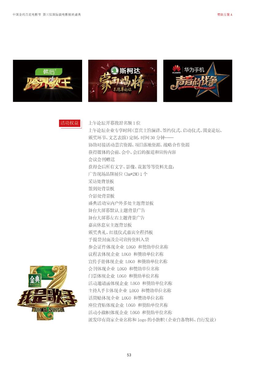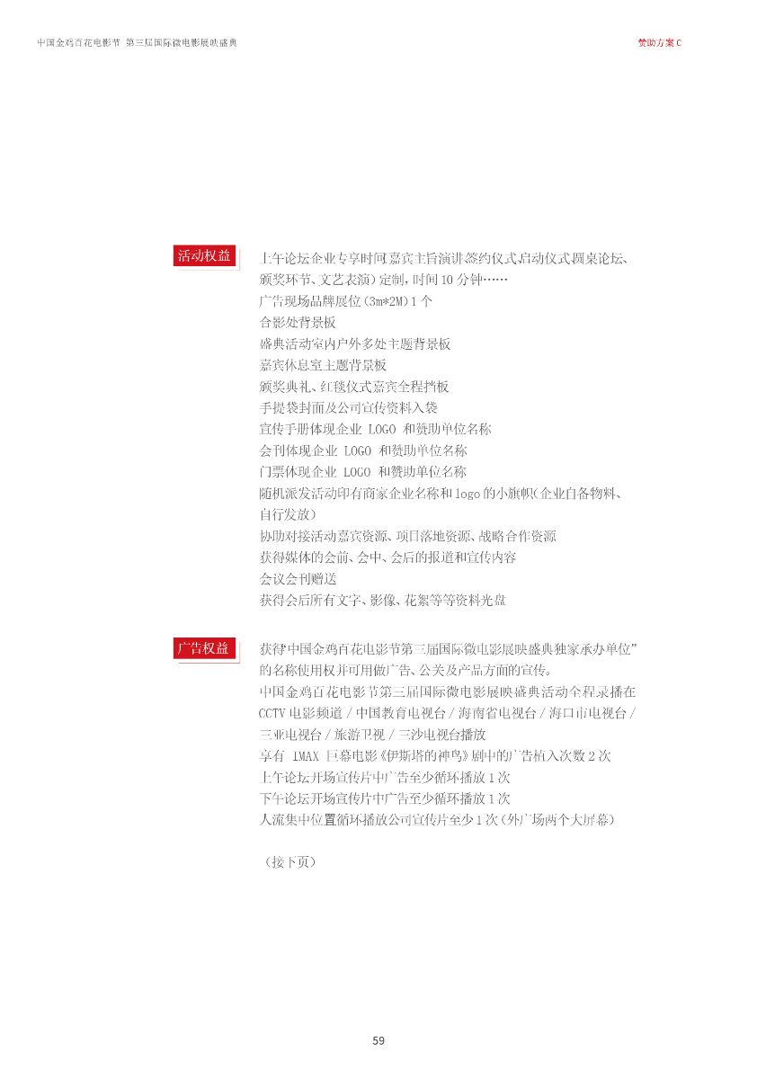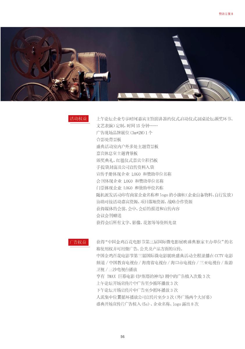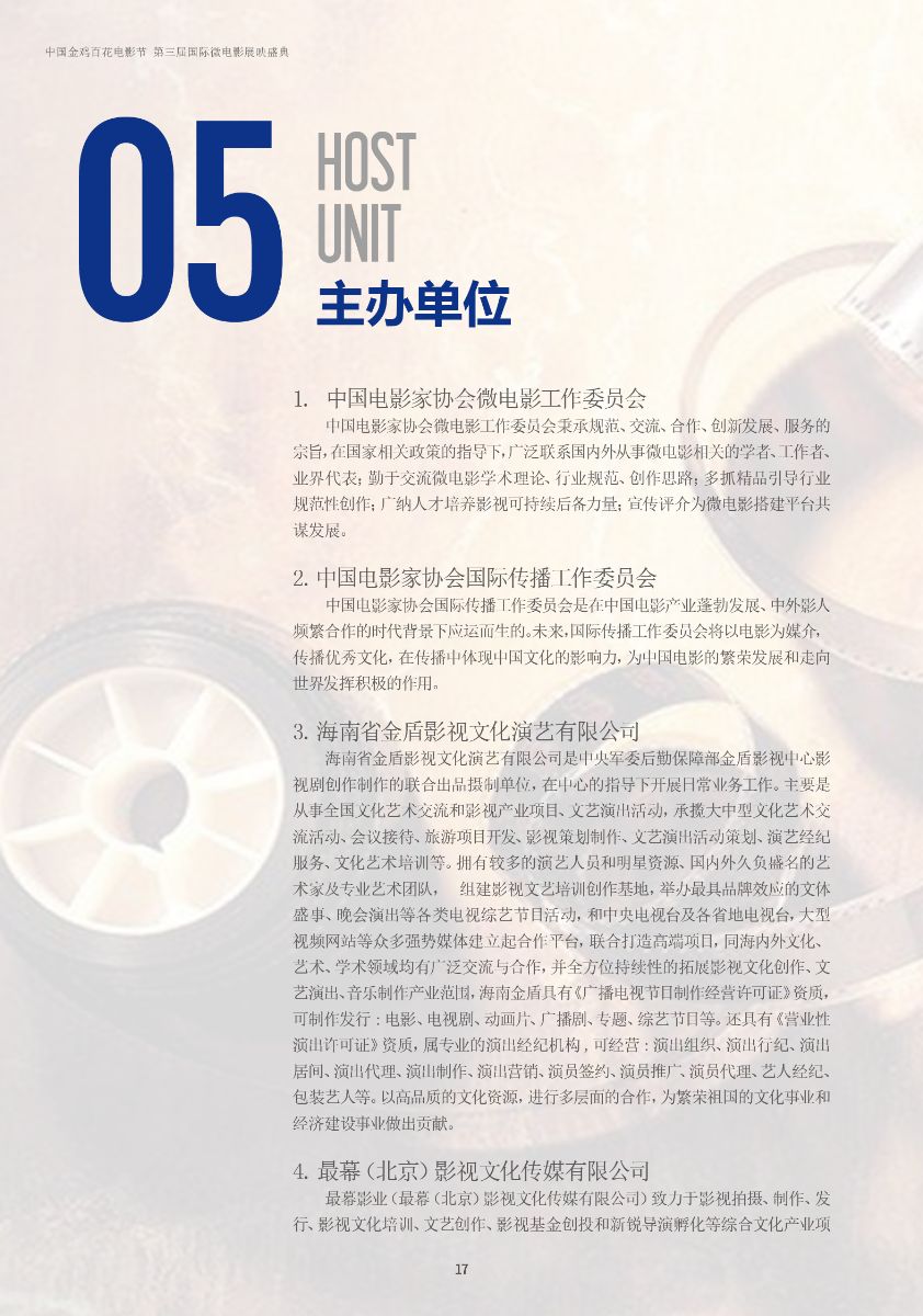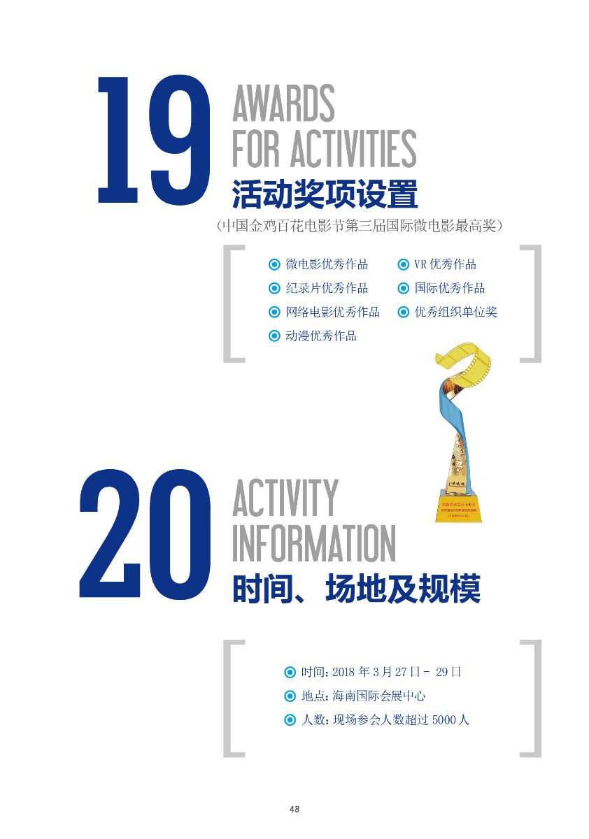 中國(guó)金雞百花電影節(jié)第三屆國(guó)際微電影盛典于2017年11月份開(kāi)始征集作品,目前作品征集活動(dòng)已經(jīng)接近尾聲。據(jù)初步統(tǒng)計(jì),共征集到各類作品7000余部,慶典活動(dòng)擬定于2018年3月28日-29日在海南省海口市舉辦。 中國(guó)金雞百花電影節(jié)國(guó)際微電影盛典是由中國(guó)電影家協(xié)會(huì)授權(quán),中國(guó)國(guó)內(nèi)唯一官方微電影展映活動(dòng),屬于公益性、學(xué)術(shù)性的展映,目前已成功舉辦兩屆,取得了良好的社會(huì)效益。該盛典還具有全媒體、多終端展映微電影作品的特色,對(duì)挖掘影視創(chuàng)作和制作人才,搭建平臺(tái)扶持微電影產(chǎn)業(yè)的發(fā)展,提高多媒體、新媒體、自媒體內(nèi)容的制作水平,豐富青少年及社會(huì)各界的文化生活,聚攏影視行業(yè)的新生力量,都具有廣泛而深遠(yuǎn)的意義。同時(shí),在海南建省30周年之際,中國(guó)金雞百花電影節(jié)國(guó)際微電影盛典也將為喜慶的30周年慶增加一縷絢麗的色彩。