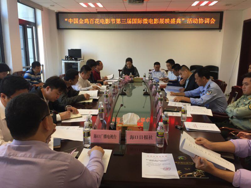 2018年3月21日中國(guó)金雞百花電影節(jié)第三屆國(guó)際微電影展映盛典等系列文化活動(dòng)的協(xié)調(diào)會(huì)議在?谑形麄鞑空匍_(kāi),此次展映盛典活動(dòng),得到了海口市委宣傳部的大力支持,市委宣傳部組織了海口市直機(jī)關(guān)工委、市文明辦、市網(wǎng)信辦、市文體局、市公安局、市交警支隊(duì)、市消防支隊(duì)、市城管委、市交通港航局、市會(huì)展局、市供電局、團(tuán)市委、?谌?qǐng)?bào)、?趶V播電視臺(tái)等相關(guān)單位參加了這次活動(dòng)的協(xié)調(diào)會(huì)議。2018年3月21日中國(guó)金雞百花電影節(jié)第三屆國(guó)際微電影展映盛典等系列文化活動(dòng)的協(xié)調(diào)會(huì)議在?谑形麄鞑空匍_(kāi),此次展映盛典活動(dòng),得到了?谑形麄鞑康拇罅χС郑形麄鞑拷M織了?谑兄睓C(jī)關(guān)工委、市文明辦、市網(wǎng)信辦、市文體局、市公安局、市交警支隊(duì)、市消防支隊(duì)、市城管委、市交通港航局、市會(huì)展局、市供電局、團(tuán)市委、?谌?qǐng)?bào)、?趶V播電視臺(tái)等相關(guān)單位參加了這次活動(dòng)的協(xié)調(diào)會(huì)議。