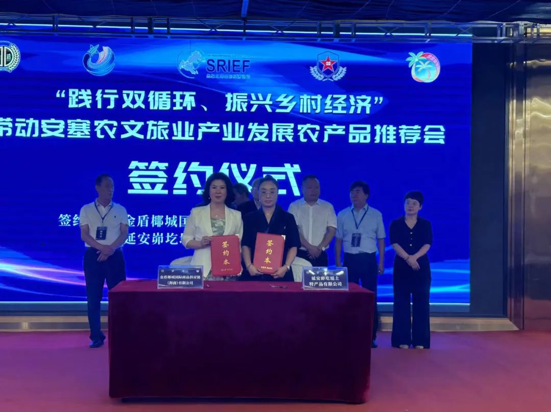 會上,張偉主任做了主旨講話,對金盾椰城國際商品供應(yīng)鏈(海南)有限公司“踐行雙循環(huán)、振興鄉(xiāng)安塞農(nóng)文旅業(yè)產(chǎn)業(yè)發(fā)展”,如何以安塞“腰鼓之鄉(xiāng)、剪紙之鄉(xiāng)、繪畫之鄉(xiāng)、民歌之鄉(xiāng)、曲藝之鄉(xiāng)”五大文化名片,“國家級文化產(chǎn)業(yè)示范基地、中國民間文化藝術(shù)之鄉(xiāng)和中國革命老區(qū)重要后方基地”,陜西省設(shè)施蔬菜生產(chǎn)基地縣區(qū)、蘋果產(chǎn)業(yè)基地、肉羊產(chǎn)業(yè)轉(zhuǎn)型生產(chǎn)示范區(qū)和陜北雜糧優(yōu)質(zhì)基地區(qū)為投資發(fā)展創(chuàng)業(yè)載體,進(jìn)行了近期發(fā)展部署和遠(yuǎn)景展望。對安塞區(qū)設(shè)施蔬菜、山地蘋果、山地肉羊、特色優(yōu)質(zhì)雜糧等農(nóng)畜產(chǎn)品合作供應(yīng)鏈建設(shè),將產(chǎn)品以原生品態(tài)為主輔之于深加工附加產(chǎn)品,按國內(nèi)國際雙循環(huán)、線上線下雙線營銷模式將安塞四大農(nóng)畜產(chǎn)品全面推向國內(nèi)國際市場。實(shí)現(xiàn)以銷促產(chǎn),形成產(chǎn)銷兩旺良性格局。對“西營信天游大舞臺”“馮家營腰鼓村”兩個(gè)文旅基地體量匹配投資,通過功能復(fù)合完善提升改造,使其整體復(fù)活,支撐帶動搞活安塞農(nóng)文旅產(chǎn)業(yè)融合升級轉(zhuǎn)型發(fā)展。對助推安塞家鄉(xiāng)經(jīng)濟(jì)發(fā)展表達(dá)了強(qiáng)烈宏大愿望。