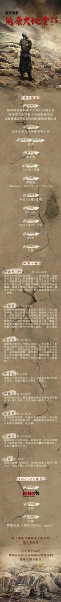 院線電影《海原大地震》組訊1920年12月16日20時06分(民國九年),甘肅省固原縣和海原縣(今寧夏回族自治區(qū)固原市原州區(qū)和海原縣)發(fā)生里氏8.5級特大地震,亦稱“海固大地震”。[1]震中位于海原縣縣城以西哨馬營和大溝門之間,北緯36.5度,東經(jīng)105.7度,震中烈度12度,震源深度17公里,地震共造成28.82萬人死亡,約30萬人受傷,毀城四座,數(shù)十座縣城遭受破壞。[2-4]海原地震是20世紀(jì)發(fā)生在中國最大的地震,也是世界歷史上最大的地震之一。[5]地震釋放的能量相當(dāng)于11.2個唐山大地震。強烈的震動持續(xù)了十余分鐘,當(dāng)時世界上有96個地震臺都記錄到了這場地震,被稱之為 “環(huán)球大震”余震維持三年時間!